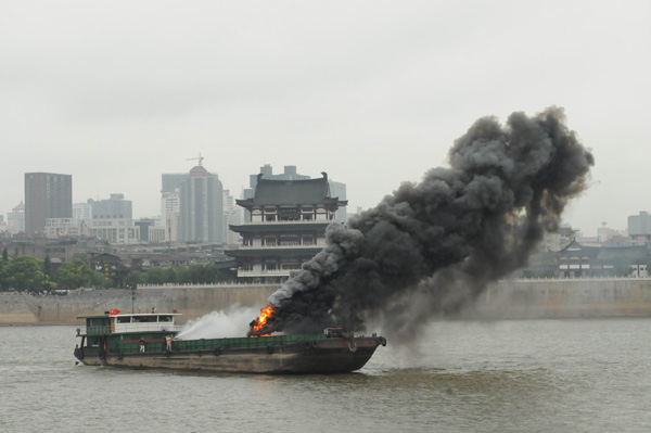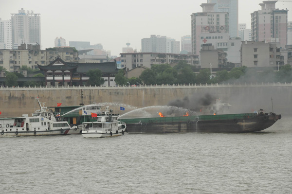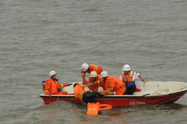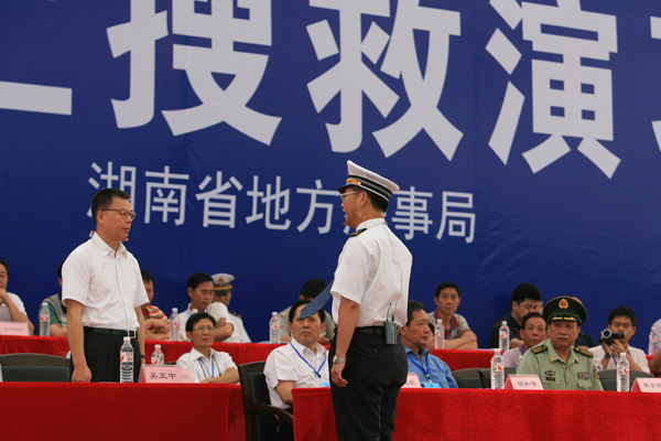 | 8月26日上午,以“關(guān)注航行安全、保護水域清潔、共建平安湖南”為主題的“2010年湘江水域水上搜救演習”在湘江長(cháng)沙杜甫江閣水域舉行。25艘船舶、近300人參加了人命救助、船舶救援、船舶消防滅火、水域油污染控制等搜救演習行動(dòng)。這是我省首次舉行大型內河水上搜救演習。