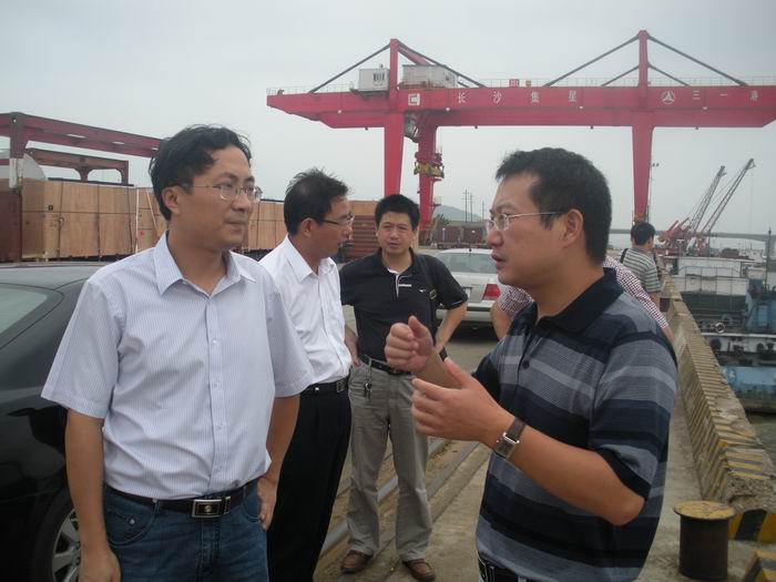 2010年9月8日,湖南省社科院研究員黃海一行在長(cháng)沙市口岸辦副主任王光輝的陪同下,來(lái)長(cháng)沙新港進(jìn)行長(cháng)沙水運口岸建設的調研。