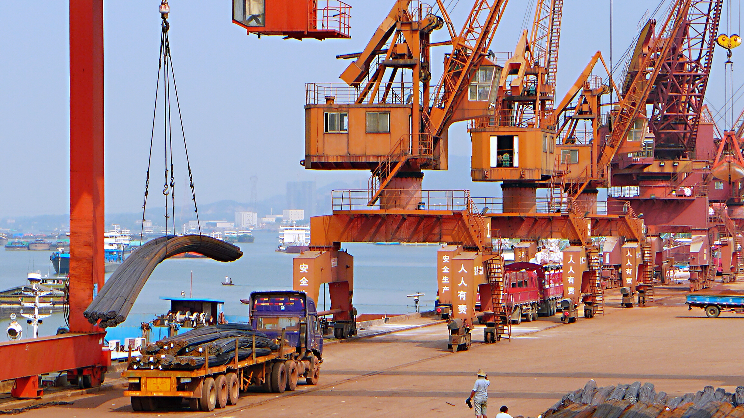9月5日,長(cháng)沙新港碼頭貨物裝卸呈現一派繁忙景象。借助“一帶一路”倡議和長(cháng)江經(jīng)濟帶國家戰略。