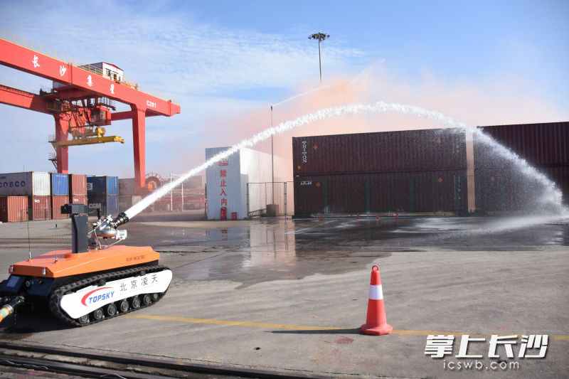 長(cháng)沙集星碼頭開(kāi)展應急救援演練 遙控“小坦克”精準滅火吸引眼球