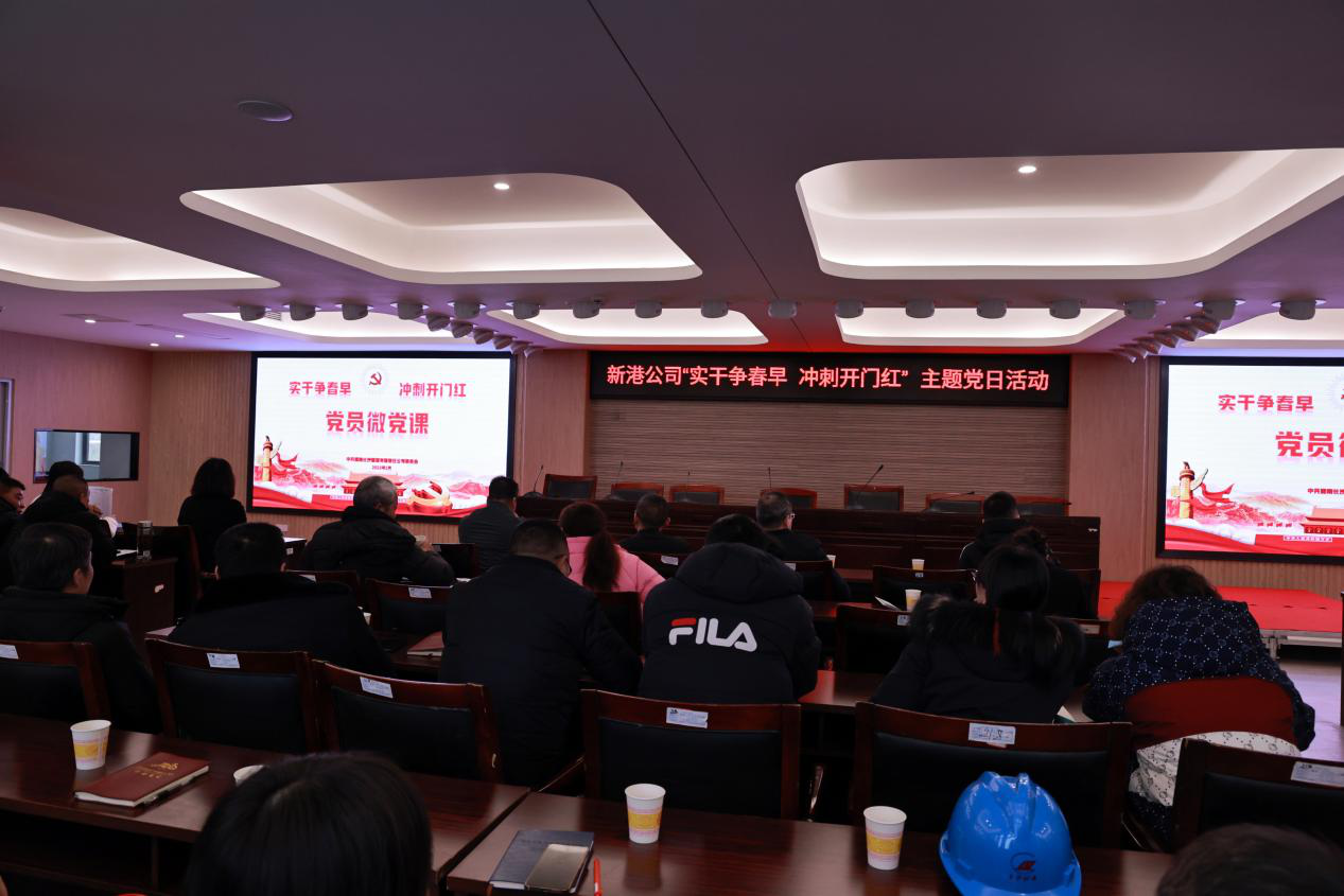 實(shí)干爭春早 沖刺開(kāi)門(mén)紅 中共湖南長(cháng)沙新港有限責任公司委員會(huì )主題黨日活動(dòng) 為扎實(shí)擔當起學(xué)習宣傳貫徹黨的二十大精神排頭兵的光榮使命,教育引導廣大黨員干部從黨的二十大專(zhuān)題學(xué)習汲取精神力量,在新的一年里,進(jìn)一步堅定理想信念,主動(dòng)肩負時(shí)代重任,開(kāi)啟新征程。2月17日上午,長(cháng)沙交通集團新港公司開(kāi)展學(xué)習貫徹黨的二十大精神“實(shí)干爭春早,沖刺開(kāi)門(mén)紅”主題黨日活動(dòng),此次活動(dòng),以“微影片、微黨課、微實(shí)事、黨員教育培訓”等多種形式推動(dòng)黨的二十大精神落地見(jiàn)效。公司黨委副書(shū)記、董事、總經(jīng)理辛華作宣講,班子成員、公司中層管理人員、各支部黨員共76人參加活動(dòng)。 深學(xué)悟初心-【微影片】 全體黨員干部集中觀(guān)看2022年度湖南反腐警示片《忠誠與背叛》。通過(guò)觀(guān)看警示教育片,引導黨員上好廉潔教育“新年第一課”,教育全司廣大黨員干部面對誘惑要保持清醒的頭腦,自覺(jué)抵制各種腐敗現象的侵蝕,牢固樹(shù)立正確的人生觀(guān)、利益觀(guān)和權力觀(guān),干干凈凈做事,老老實(shí)實(shí)做人。  篤行求實(shí)效-【微黨課】 學(xué)理論之思,踐初心之行。新港公司以“實(shí)干爭春早,沖刺開(kāi)門(mén)紅”為主題,從七個(gè)黨支部里的推選黨員干部帶頭講,鼓勵黨員人人上臺講【微黨課】,突出“微”這個(gè)形式,聚焦“黨”這個(gè)靈魂,利用“課”這個(gè)載體,教育廣大黨員從不同層面、不同角度深刻領(lǐng)會(huì )黨的理論創(chuàng )新成果,以新思想、新觀(guān)念、新思路、新舉措,開(kāi)創(chuàng )公司高質(zhì)量發(fā)展新局面。