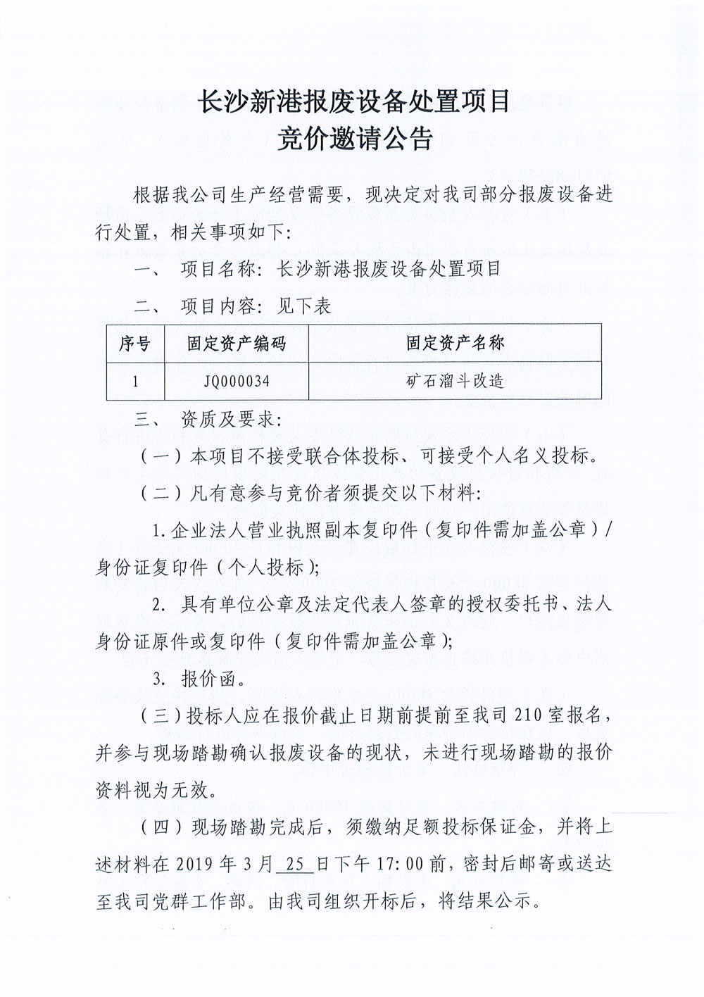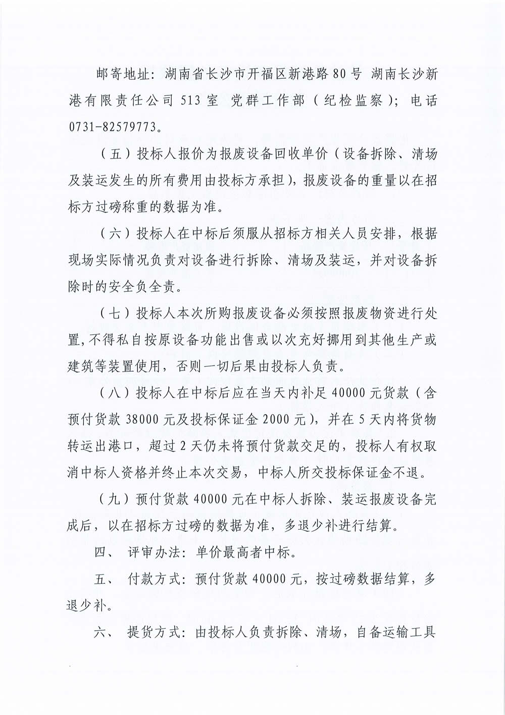 長(cháng)沙新港報廢設備處置項目競價(jià)邀請公告
