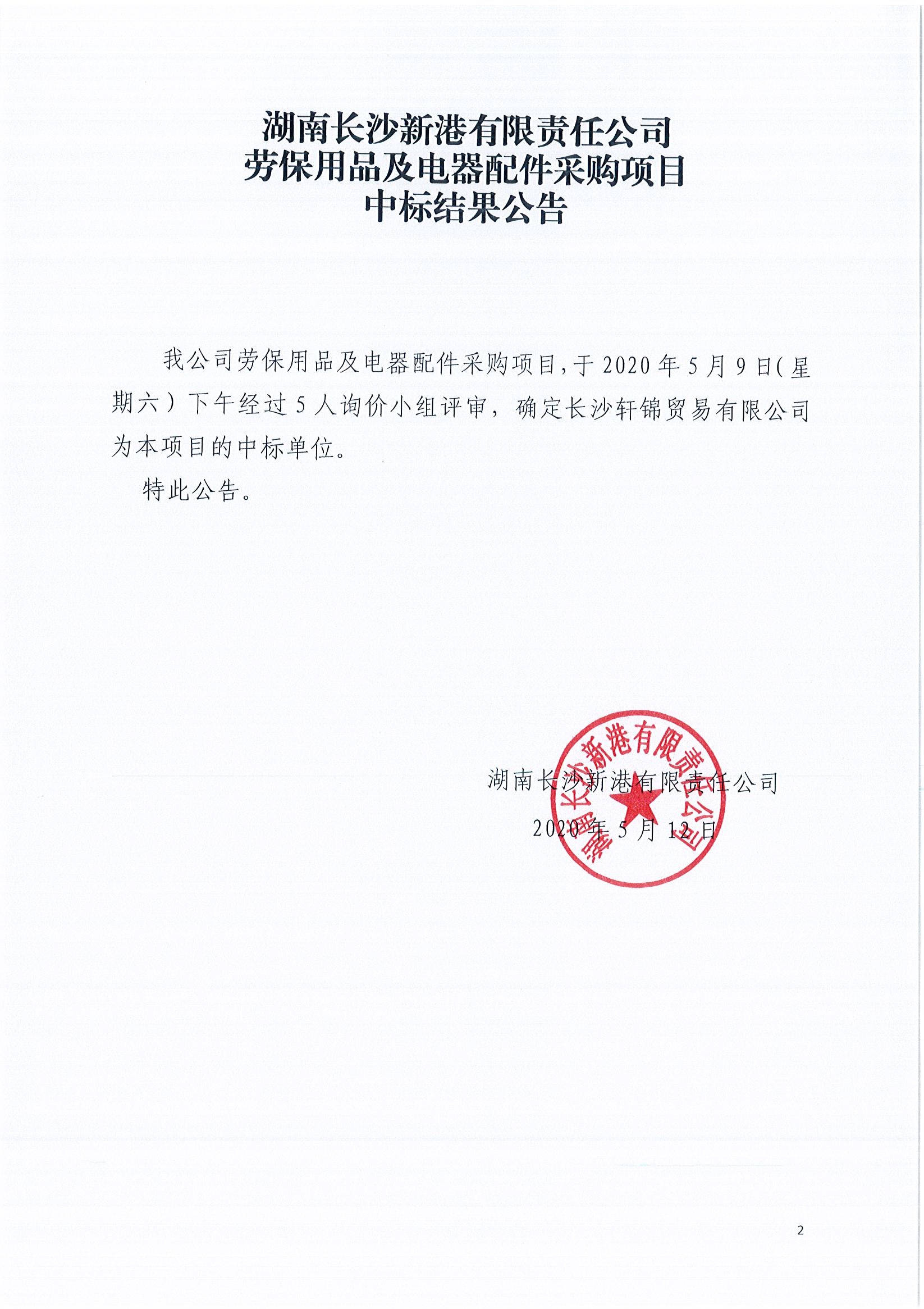 勞保用品及電器配件采購項目《中標結果公告》