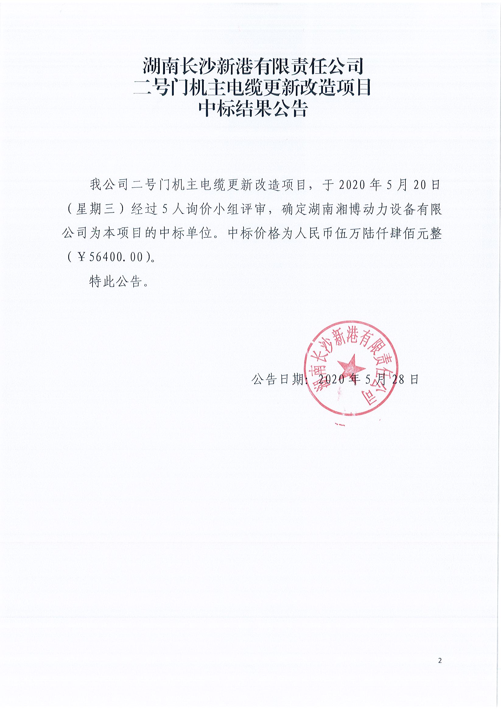 二號門(mén)機主電纜更新改造項目《中標結果公告》