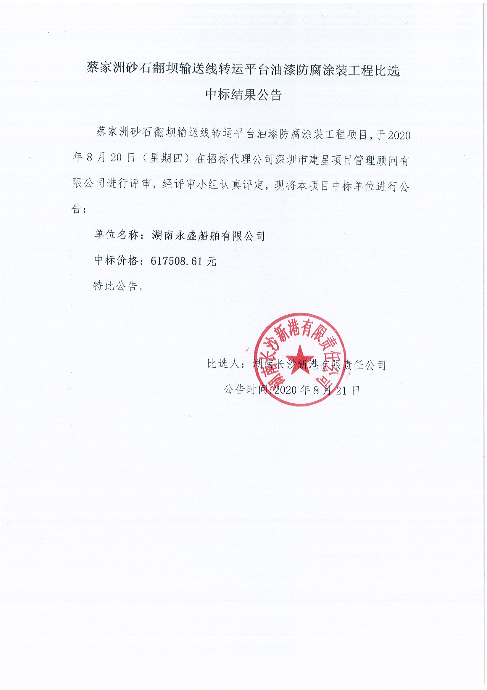 蔡家洲砂石翻壩輸送線(xiàn)轉運平臺油漆防腐涂裝工程比選中標結果公告