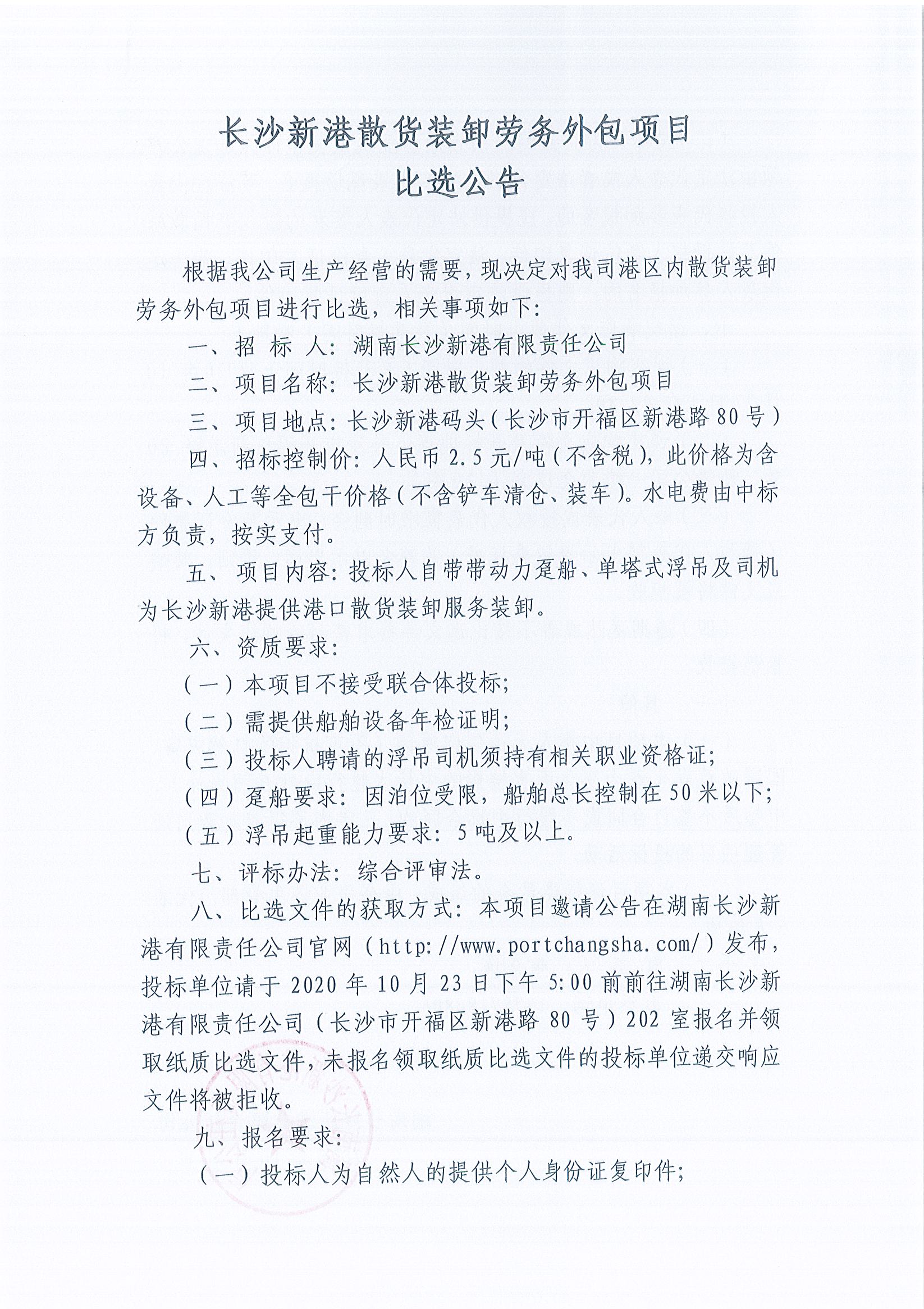 長(cháng)沙新港散貨裝卸勞務(wù)外包項目比選公告