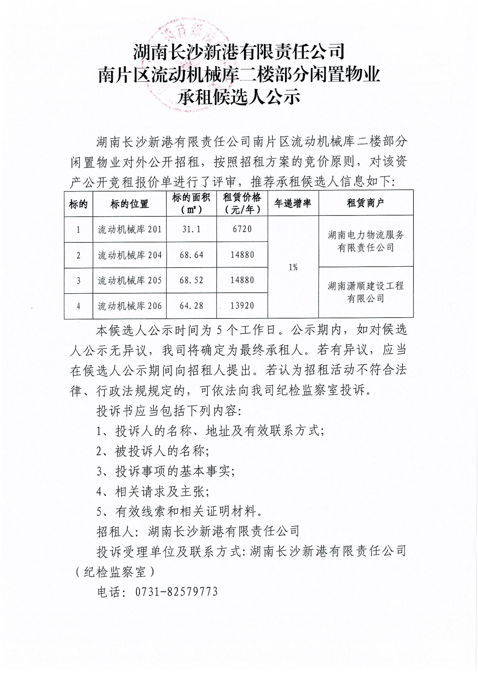 南片區流動(dòng)機械庫二樓部分閑置物業(yè)承租候選人公示
