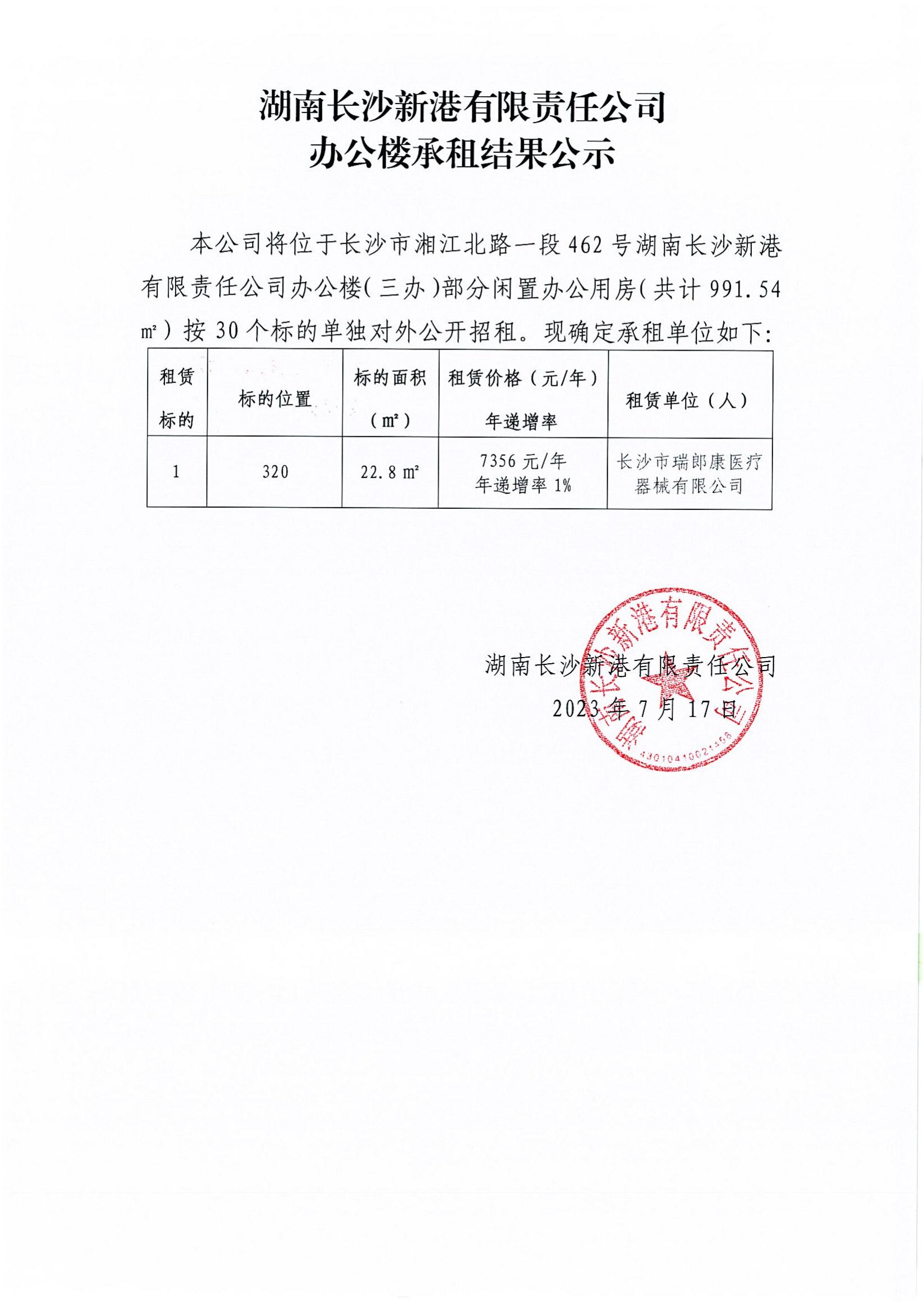 湖南長(cháng)沙新港有限責任公司辦公樓承租結果公示(320)