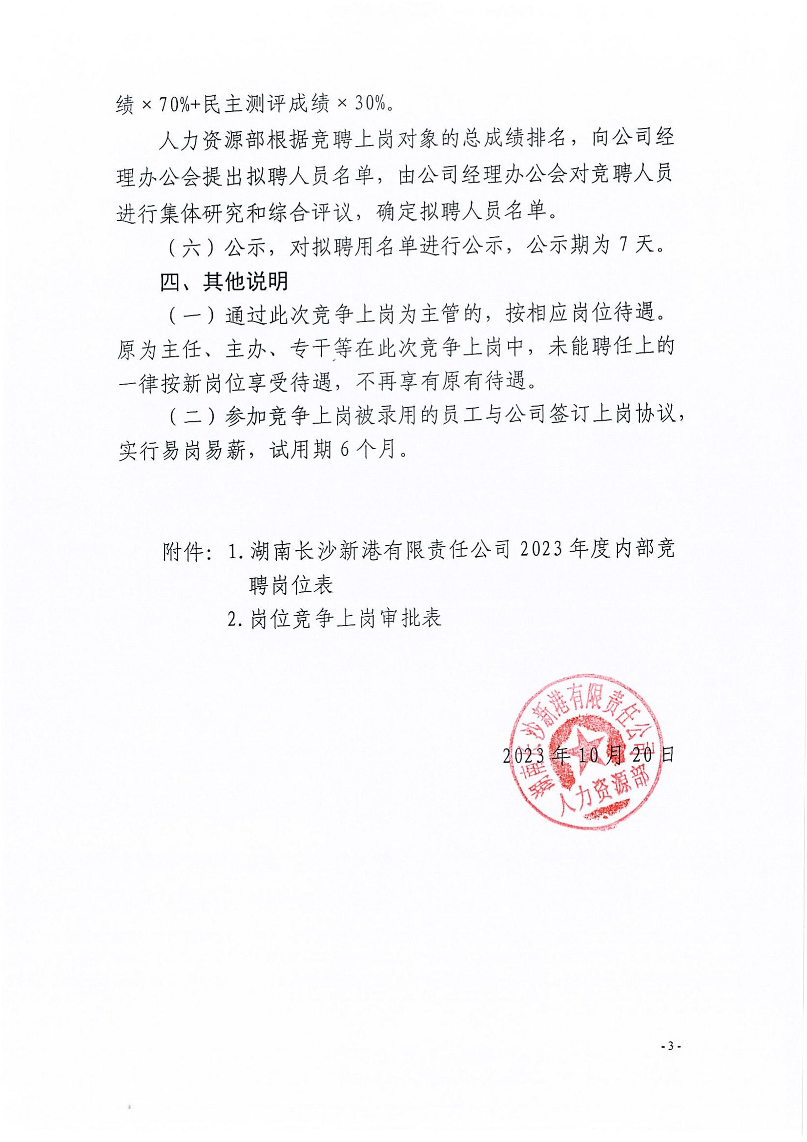 新港公司2023年度內部競聘公告