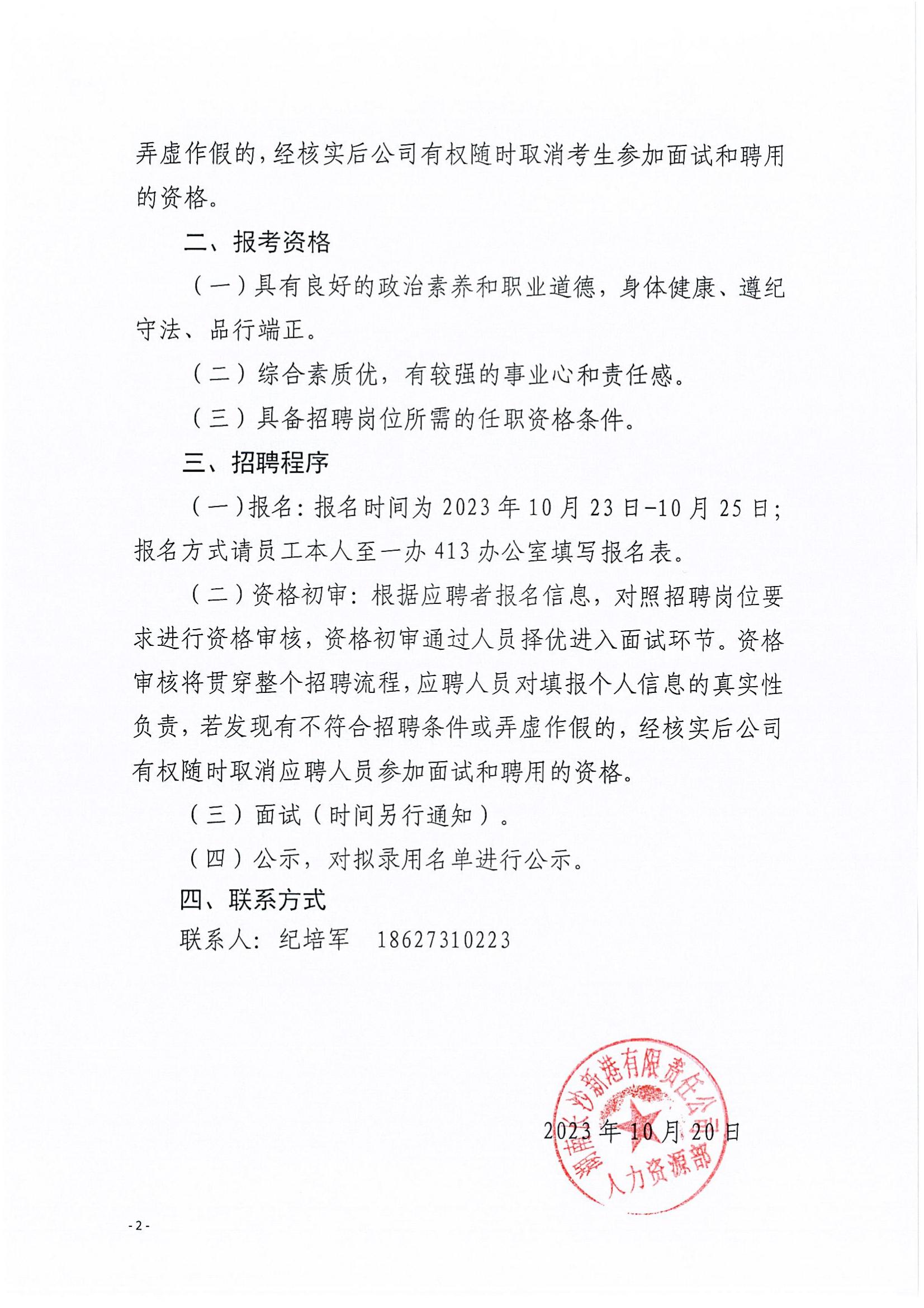 湖南長(cháng)沙新港有限責任公司招聘公告