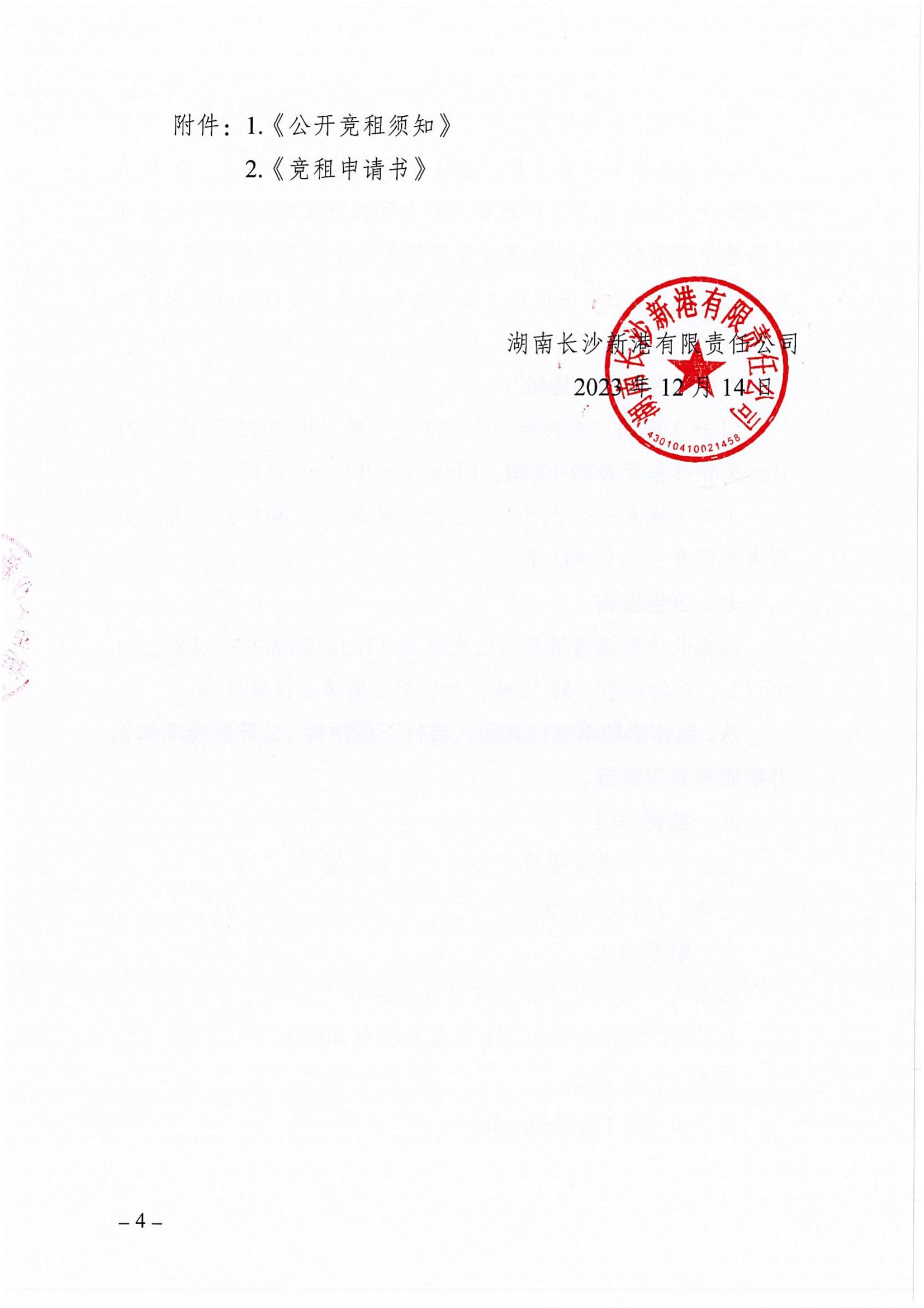湖南長(cháng)沙新港有限責任公司招租公告