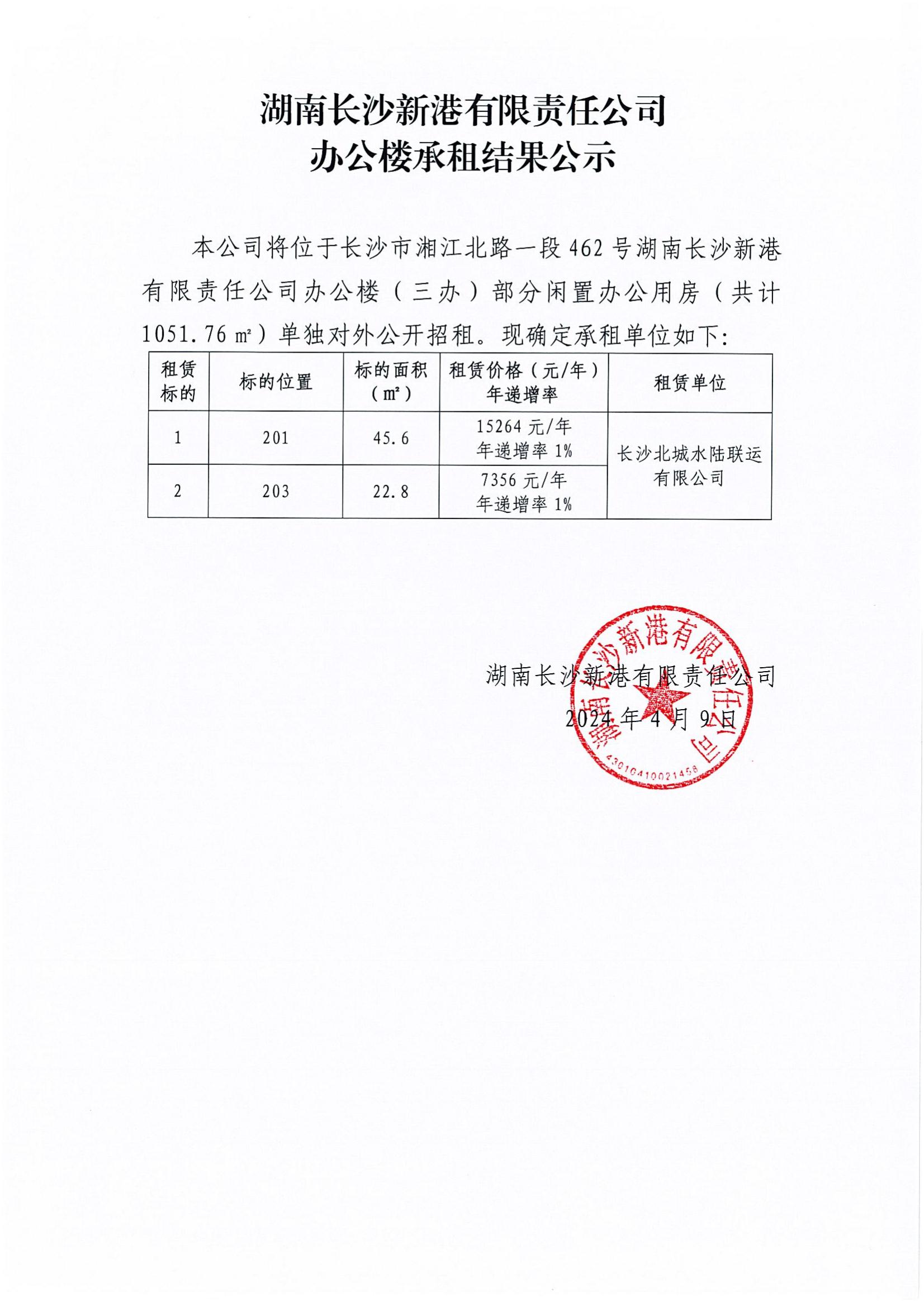 湖南長(cháng)沙新港有限責任公司辦公樓承租結果公示